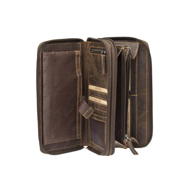 Unisex kožená peněženka/etue 1406-hnědá s potiskem - DBRN